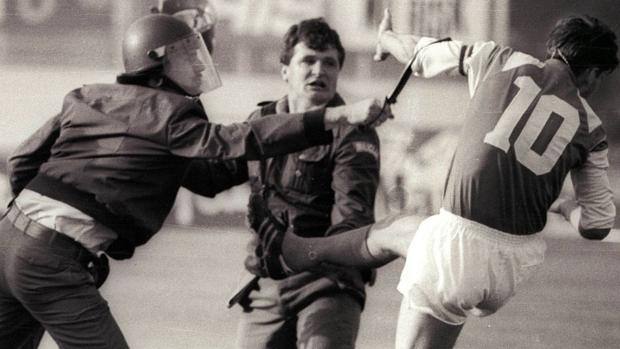 LA REAZIONE DI BOBAN — Quando i giocatori della Dinamo tentano di convincere i tifosi a riprendere il loro posto, avviene il fatto più eclatante: Boban colpisce un agente con un calcio volante per proteggere un giovane tifoso croato dalle manganellate della polizia federale jugoslava; Boban viene tratto in salvo da alcuni supporter e dirigenti della Dinamo. La rivolta si esaurisce solo a notte fonda, dentro e all'esterno dello stadio, con una marea di arresti e feriti. Boban, che diventerà un eroe per il popolo croato, rischia l'arresto, ma sarà sospeso per sei mesi e non verrà convocato ai Mondiali del 1990 in Italia. "Ho reagito a una grande ingiustizia, così chiara che uno non poteva rimanere indifferente. Quando il poliziotto mi ha colpito, ho risposto" raccontò poi Boban, tutto sommato uno dei punti di partenza dell'indipendenza croata.